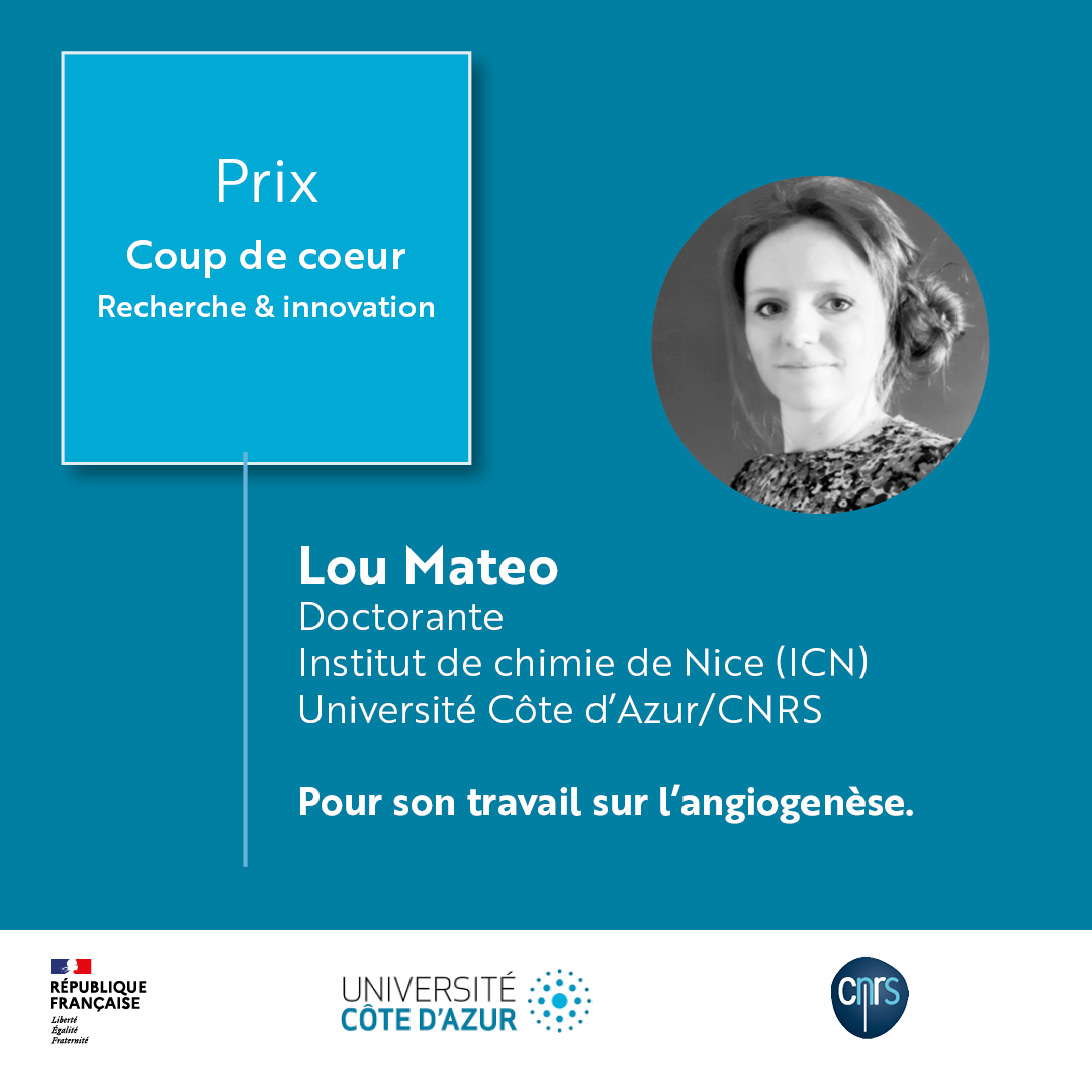 Les études biologiques ont permis de révéler une molécule « hit ». Une campagne in vivo sur des poissons- zèbres est envisagée afin d’étudier sa capacité à entraver l’angiogenèse.Graduate Student Award, European Materials Research Society (E-MRS)